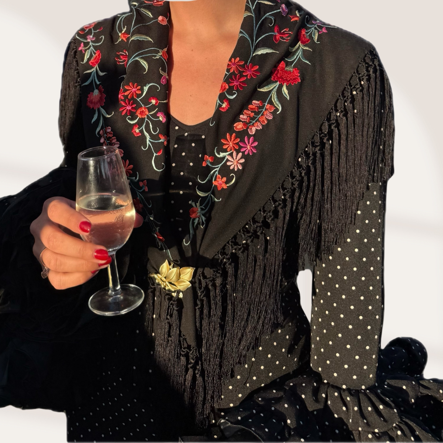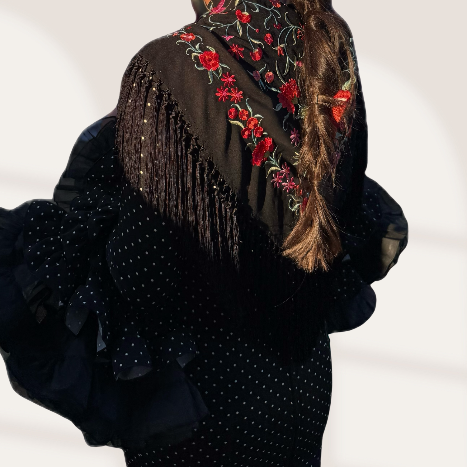 Mantoncillo de crespón de medidas 143x52cm. Con caída.
